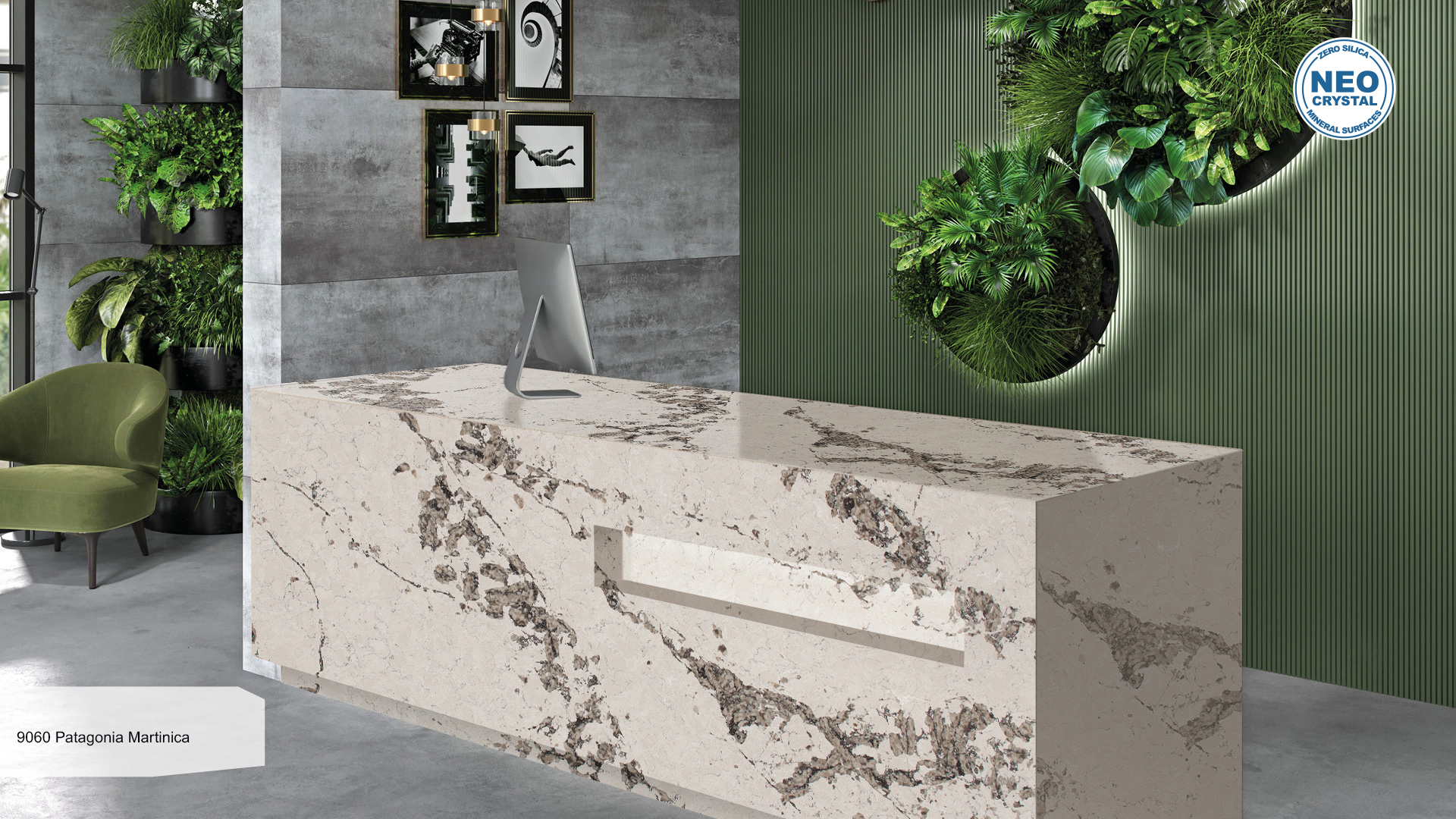 Ved å kombinere det beste fra naturen og menneskelig håndverk, består dette miljøvennlige materialet av naturlig kvartskorn (95 %), polymerharpiks (4 %) og pigmenter (1 %).